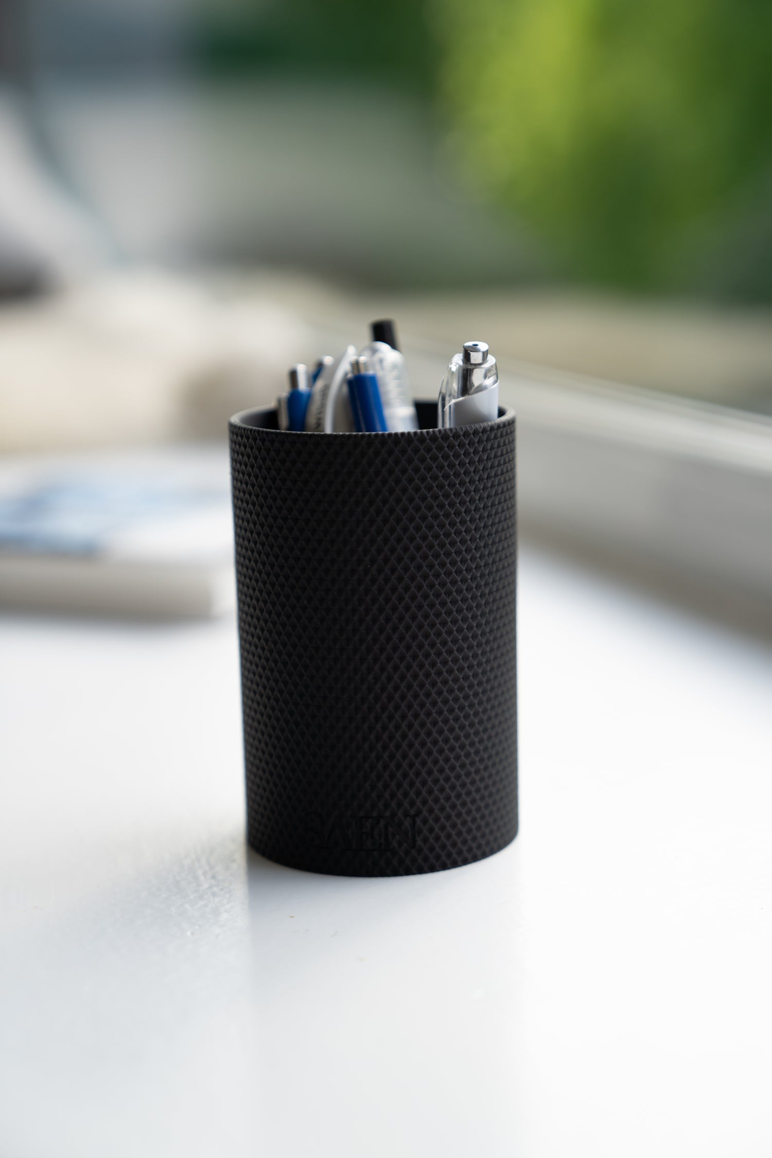Der minimalistische Stiftehalter kombiniert modernes Design mit funktionaler Struktur.