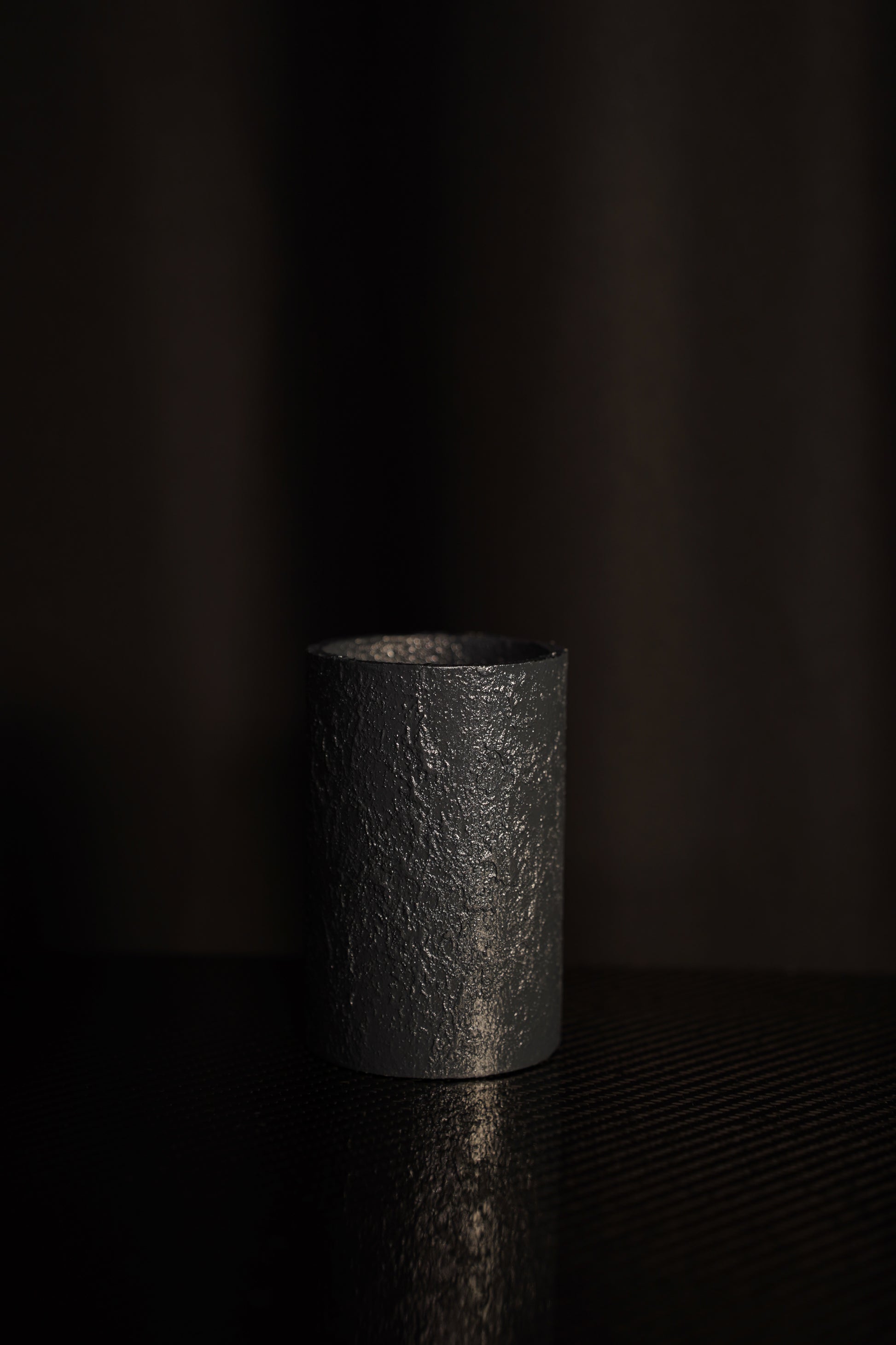 Die markante, handveredelte Oberfläche verleiht jedem Stück eine spürbare Tiefe und eine unverwechselbare Haptik. Kein Becher gleicht dem anderen – jedes Exemplar ist ein Unikat und bewegt sich zwischen funktionalem Design und modernem Objektcharakter.